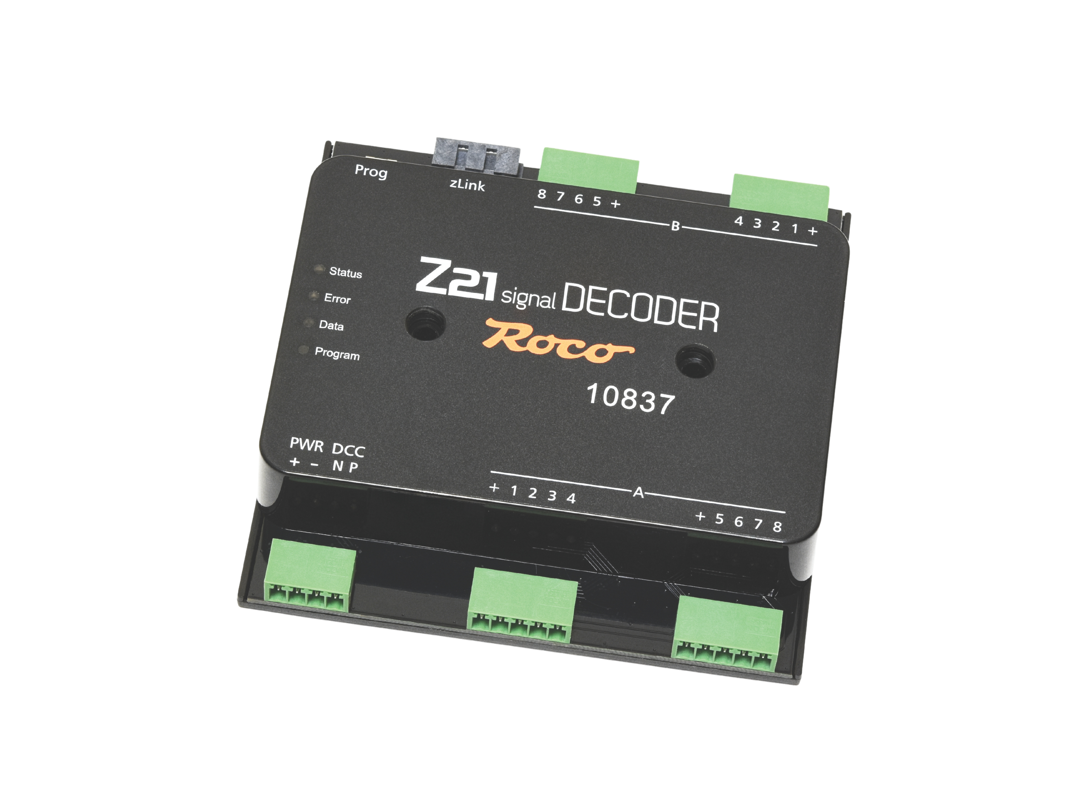 Der Z21 signal DECODER ist ein universell verwendbarer DCC Decoder für 2 bis 4 komplexe Lichtsignale mit gemeinsamem Plus. Er ist einfach handhabbar und zukunftssicher dank seiner Updatebarkeit.